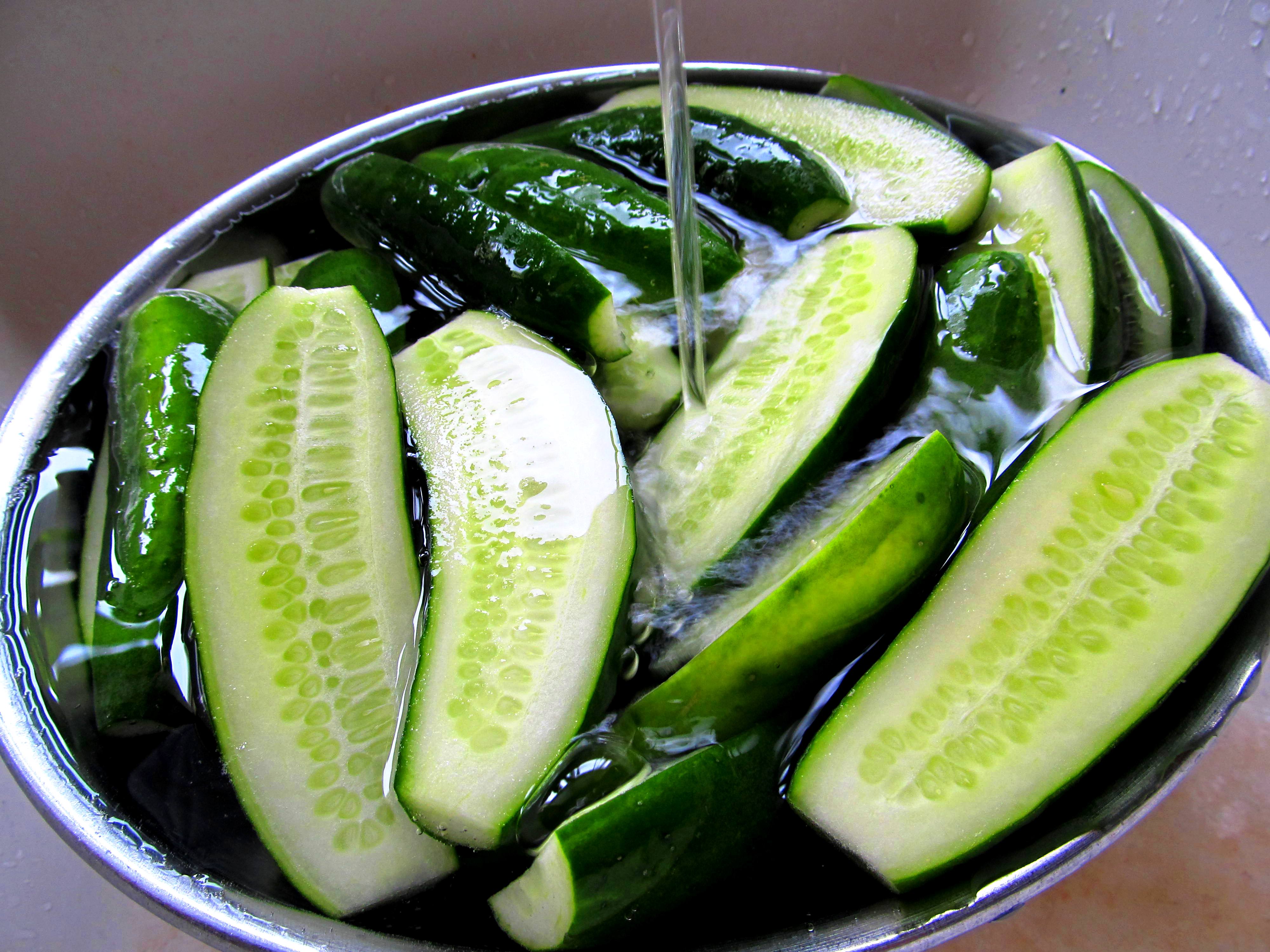 Step 2: prepare your cucumbers. Wash and slice the cucumbers. Take off the ends because there may still be a stem or flower leftover from picking. You can half, quarter, or slice your cucumbers. Some can even be left whole, all depending on your consumption likes.