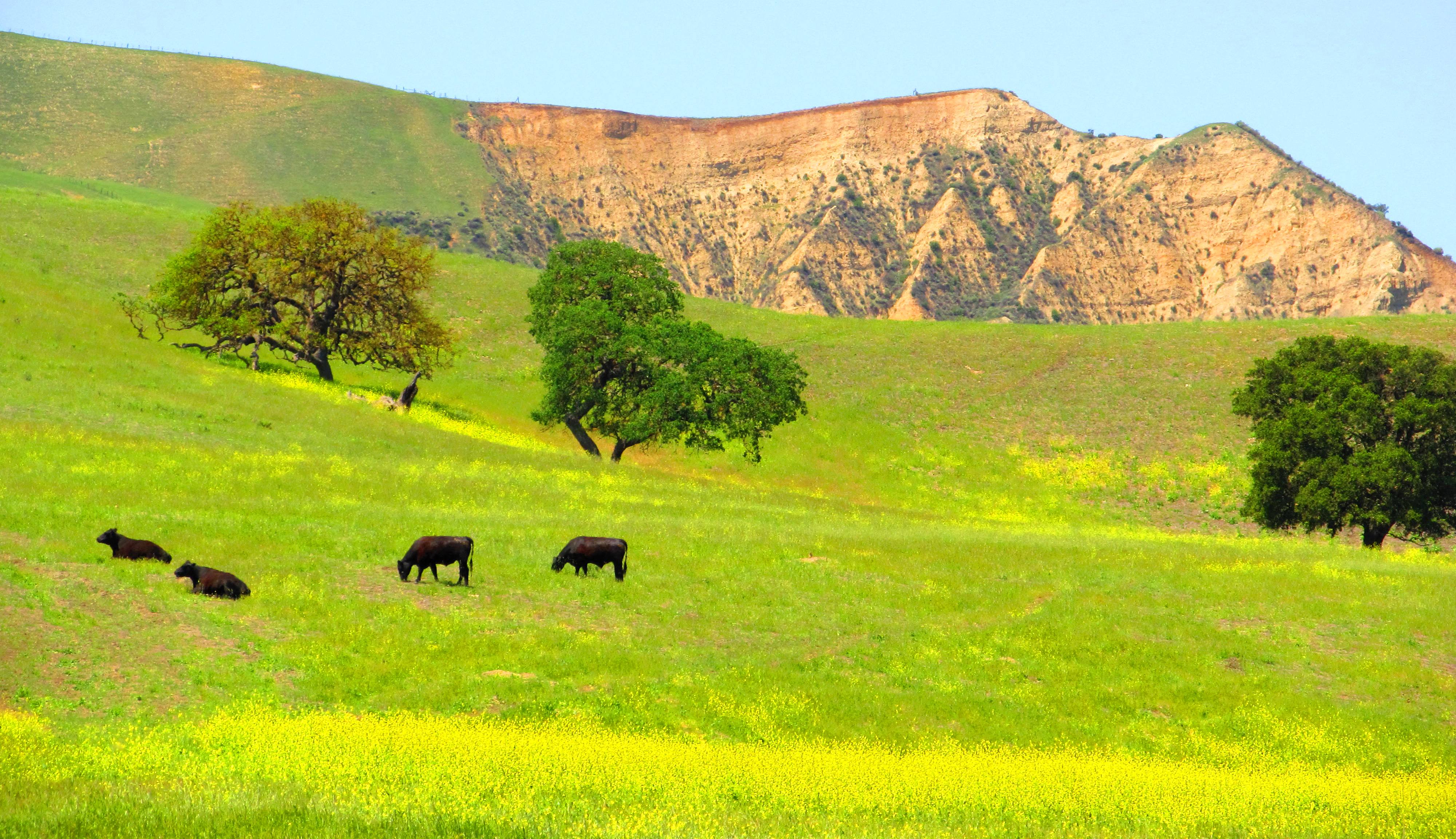 To my right is the Paicines Reservoir where I’ll soon be arriving at my destination. I turn right off of Highway 25 onto Cienega Road. I pass a slightly crooked, faded stop and arrive at a large green metal gate. The sign on the gate reads Paicines Ranch Grass Fed Beef. I am here today to meet with one of San Benito County’s few female cattle ranchers. Sallie Calhoun; former electrical engineer turned California grass fed beef rancher and Holistic Management student.
