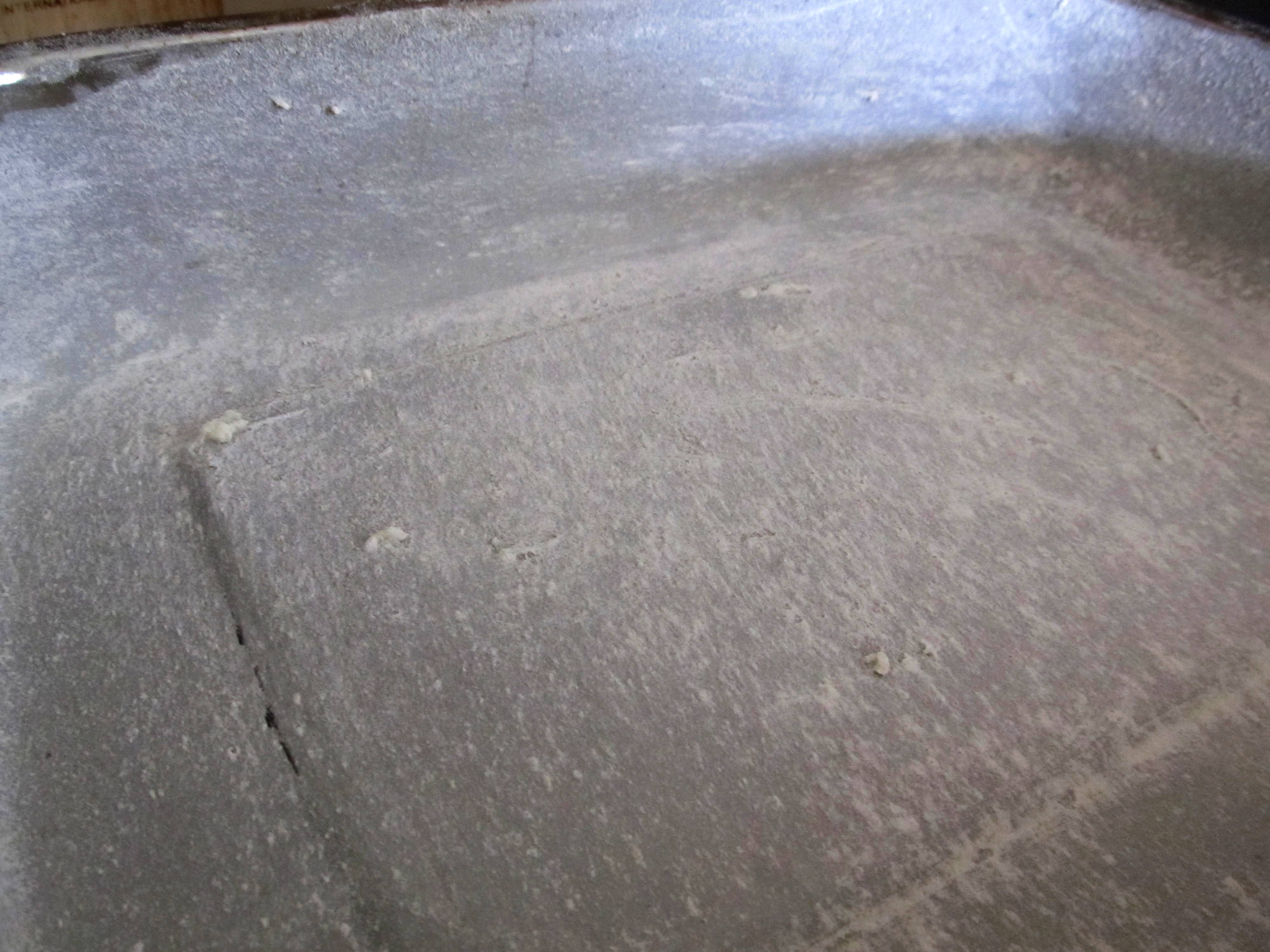 Step 6: Grease and flour an 8 x 11 baking dish.